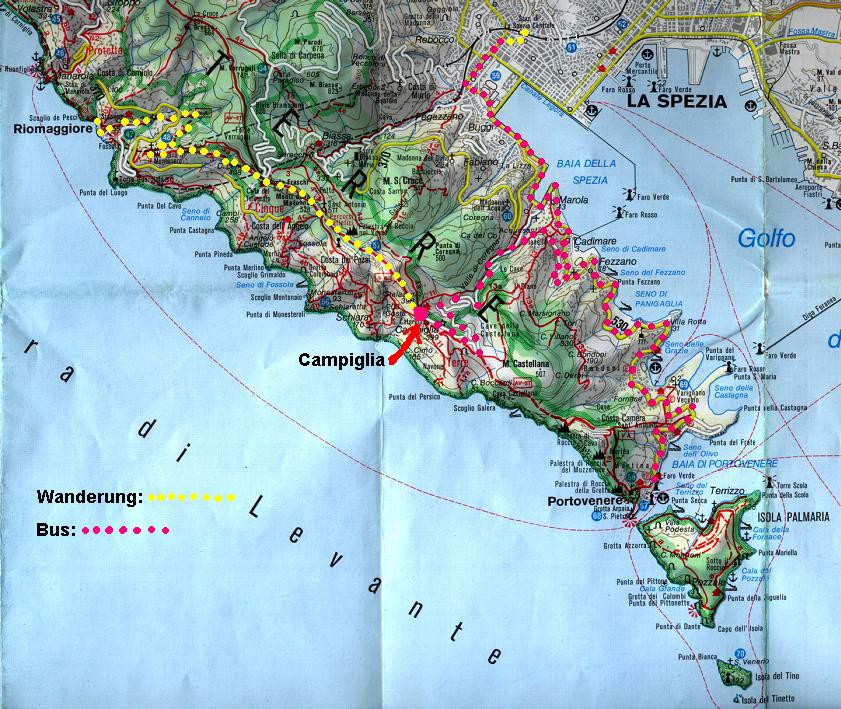"Zwischen Himmel und Meer" Cinque Terre Wanderkarte: Riomaggiore - Campiglia - Portovenere - La Spezia wieder zurück