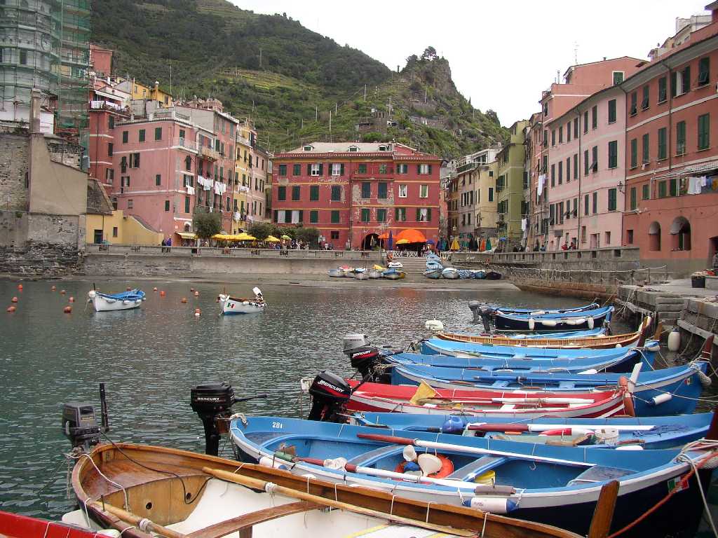 reizvollen Ortes. Vernazza , die erste Etappe unserer Wanderung haben wir erreicht. Die kleine Hafenpiazza hat es uns für eine längere Pause angetan, ein Cappuccino dazu ein Stück Focaccia, von oben die Sonne, dazu ein erfrischendes Lüftchen, was will man mehr? |