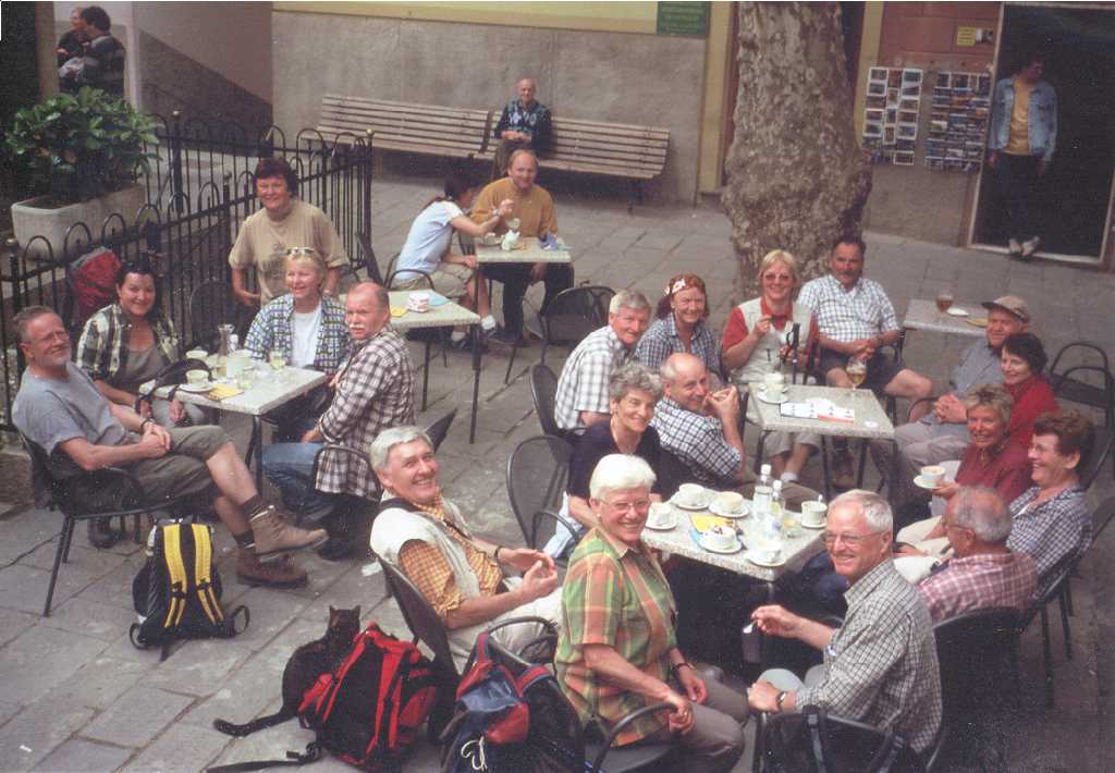 mit seinen Platanen und Kriegerdenkmal angekommen, werden wir heute von Veronica ganz herzlich das zweite Mal empfangen und bewirtet. |
