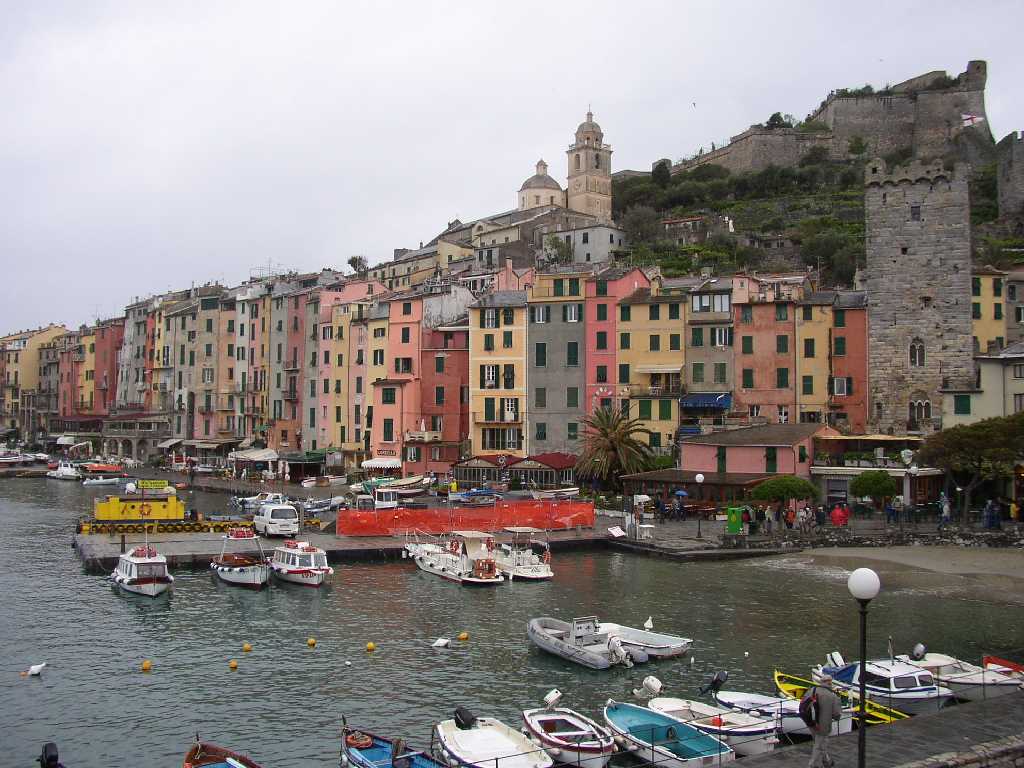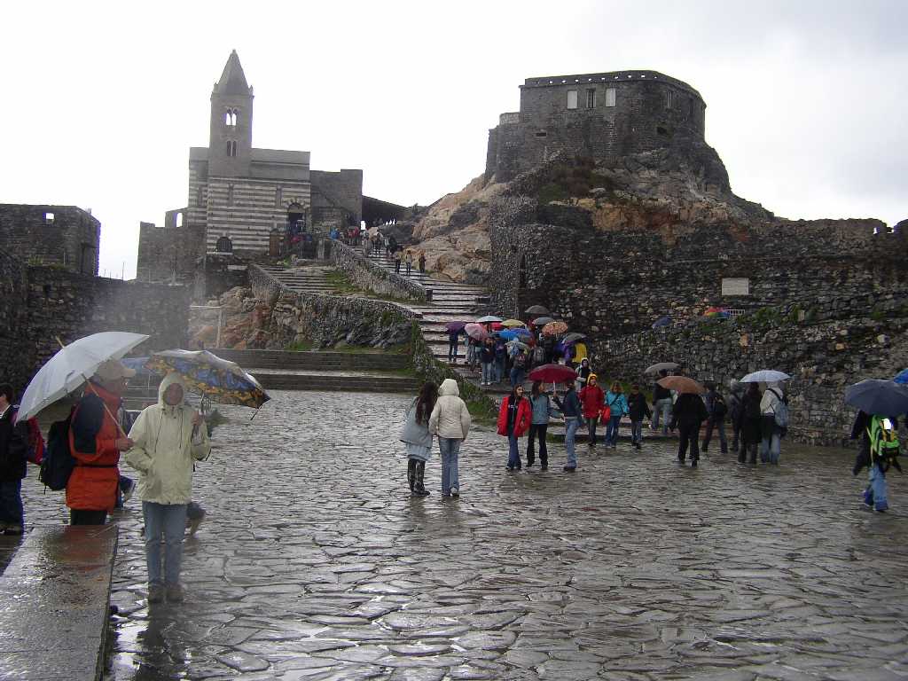 In Portovenere angekommen, empfängt uns erst einmal wieder ein Regenschauer. Es scheint heut nicht unser Tag zu sein, denn das Schiff nach Monterosso fährt wegen der stürmischen See auch nicht. So bleibt uns bei diesem Wetter nur noch das nächste Kaffee, bis der Bus zum Bahnhof nach La Spezia von hier abfährt. |