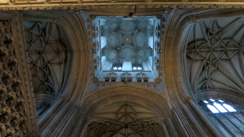 ausgestaltete Fächergewölbe des Bell Harry Tower zu sehen, dessen Name auf die