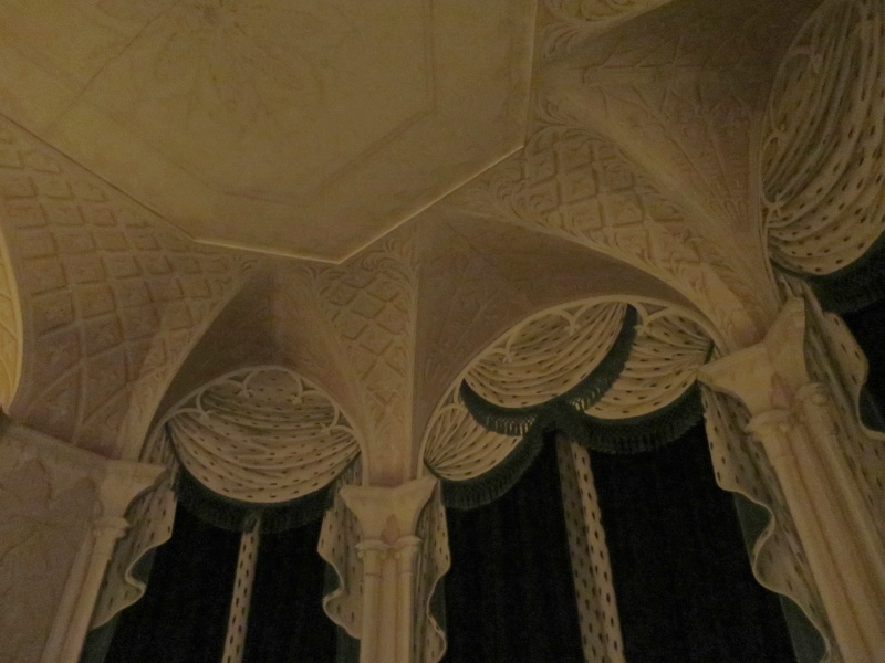 Die Decke ist reich geschmückt mit ausufernden Stuckarbeiten - gemalt;