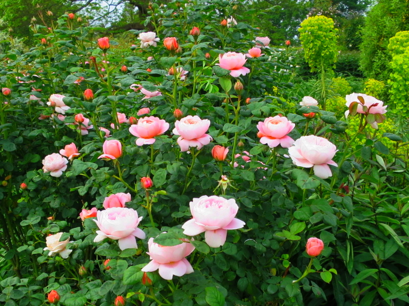 Umgeben und eingebettet in Rosenbeete mit Hunderten von