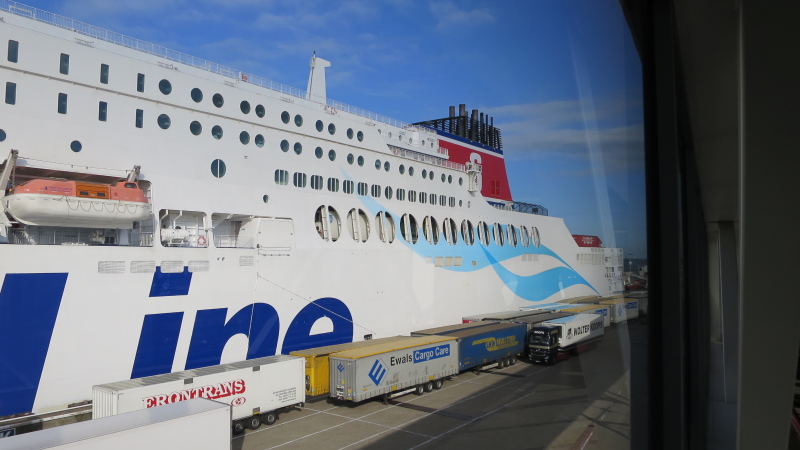 hat den Bus in Hoek van Holland von der Fähre und aus dem Fährhafen gesteuert und los ging die