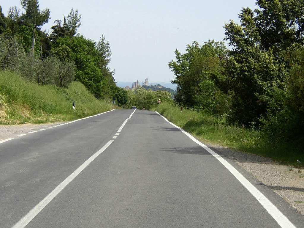 entlang bis nach San Gimignano. Und von oben brennt die Sonne. Es