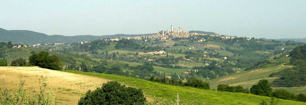 Monteriggioni vorbei, das uns mit seiner mittelalterlichen Stadtmauer aus der Ferne grüßt. Kurz nach Colle di Val d'Elsa