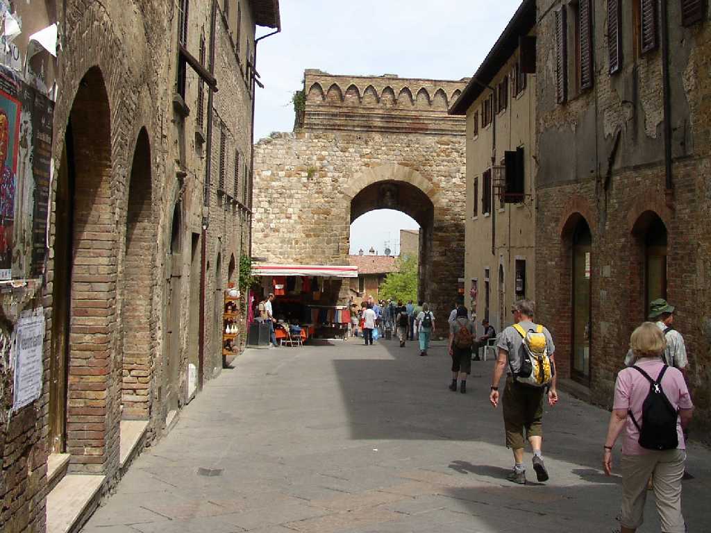 ist Markttag in San Gimignano. Wir schlängeln uns durch die