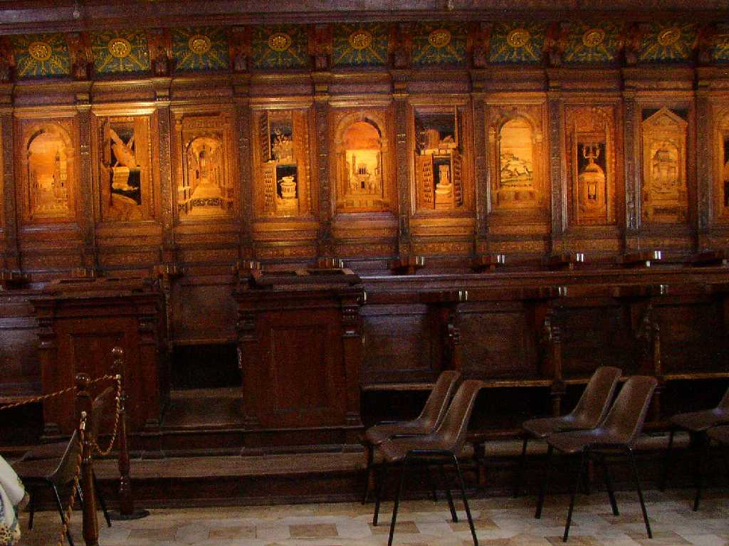 wunderschönen Schnitzereien und Intarsien des Chorgestühls der